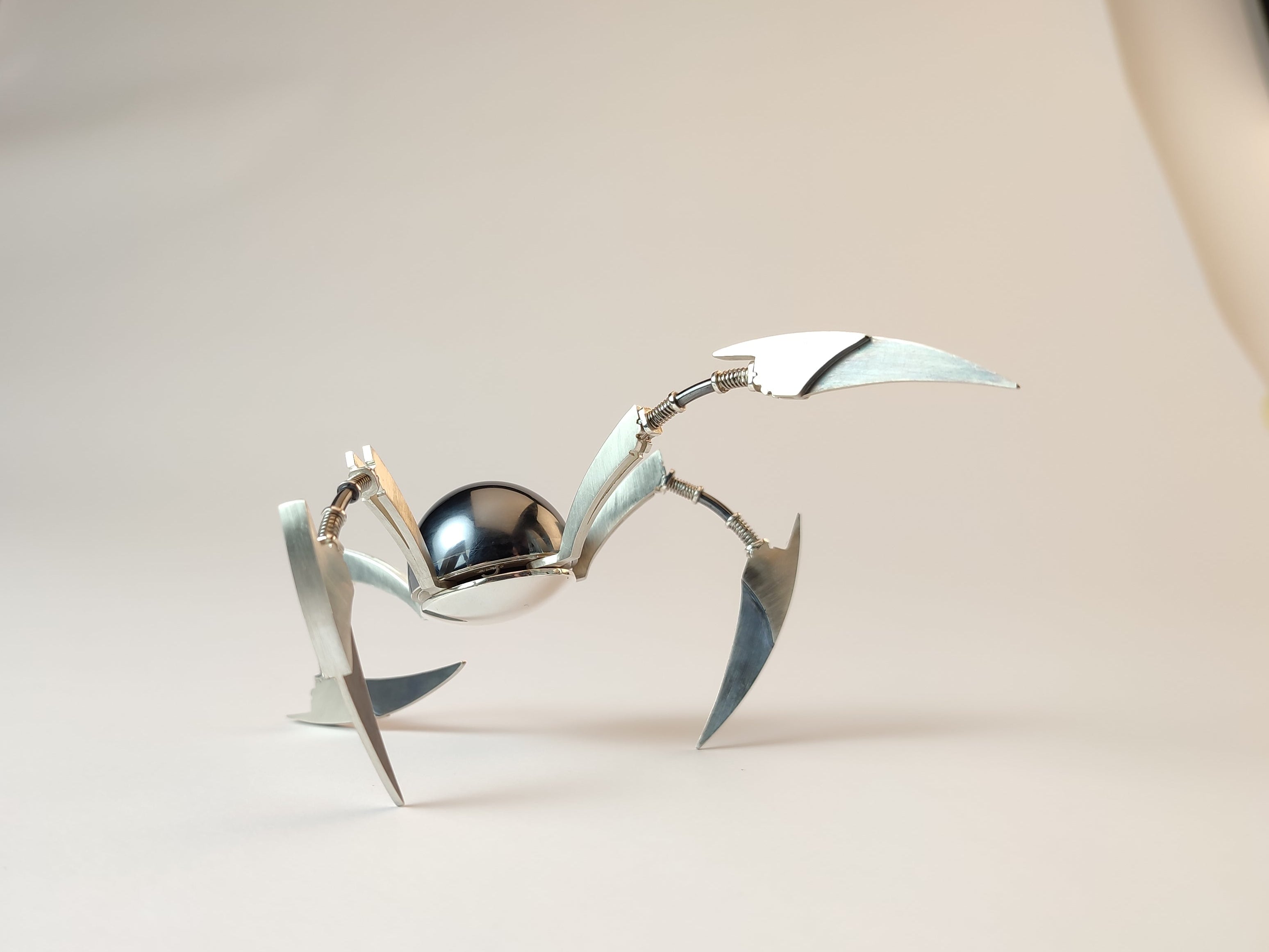 One of my biggest kinetic projects is the mechanical puffer fish. consisting out of over 50 individual parts and set with a bunch of stones in the colours of the sea it took me over a week to build and even longer to plan.